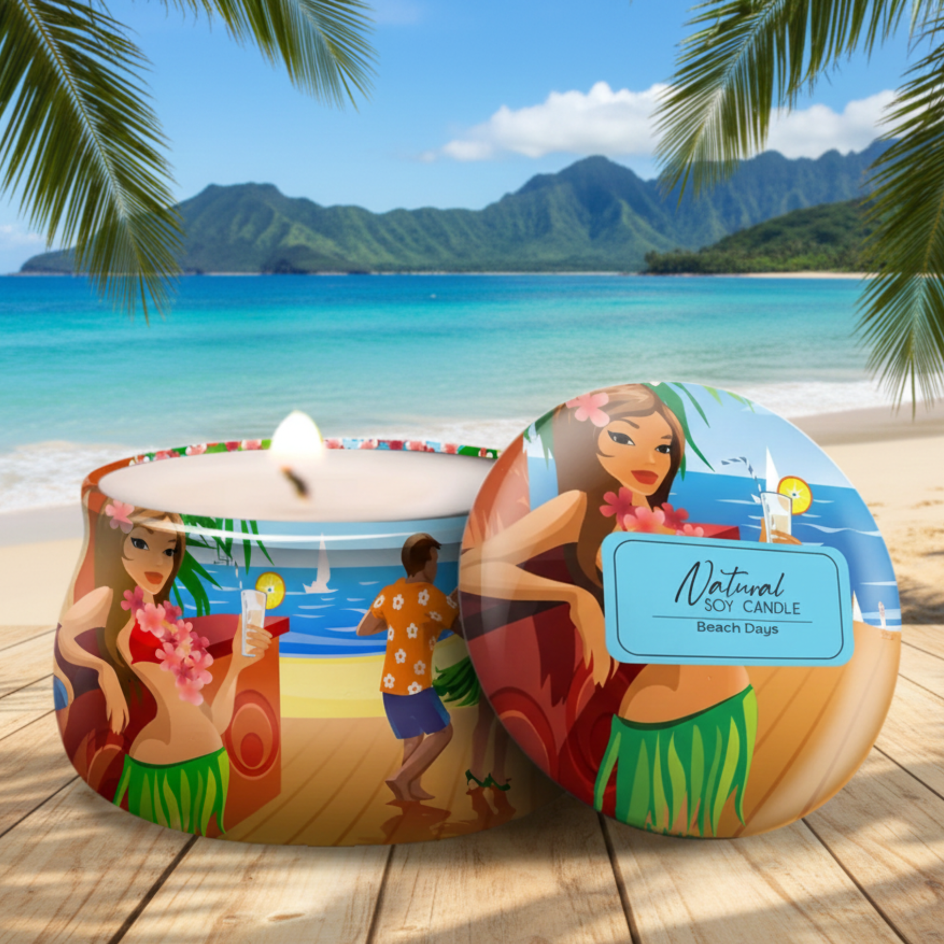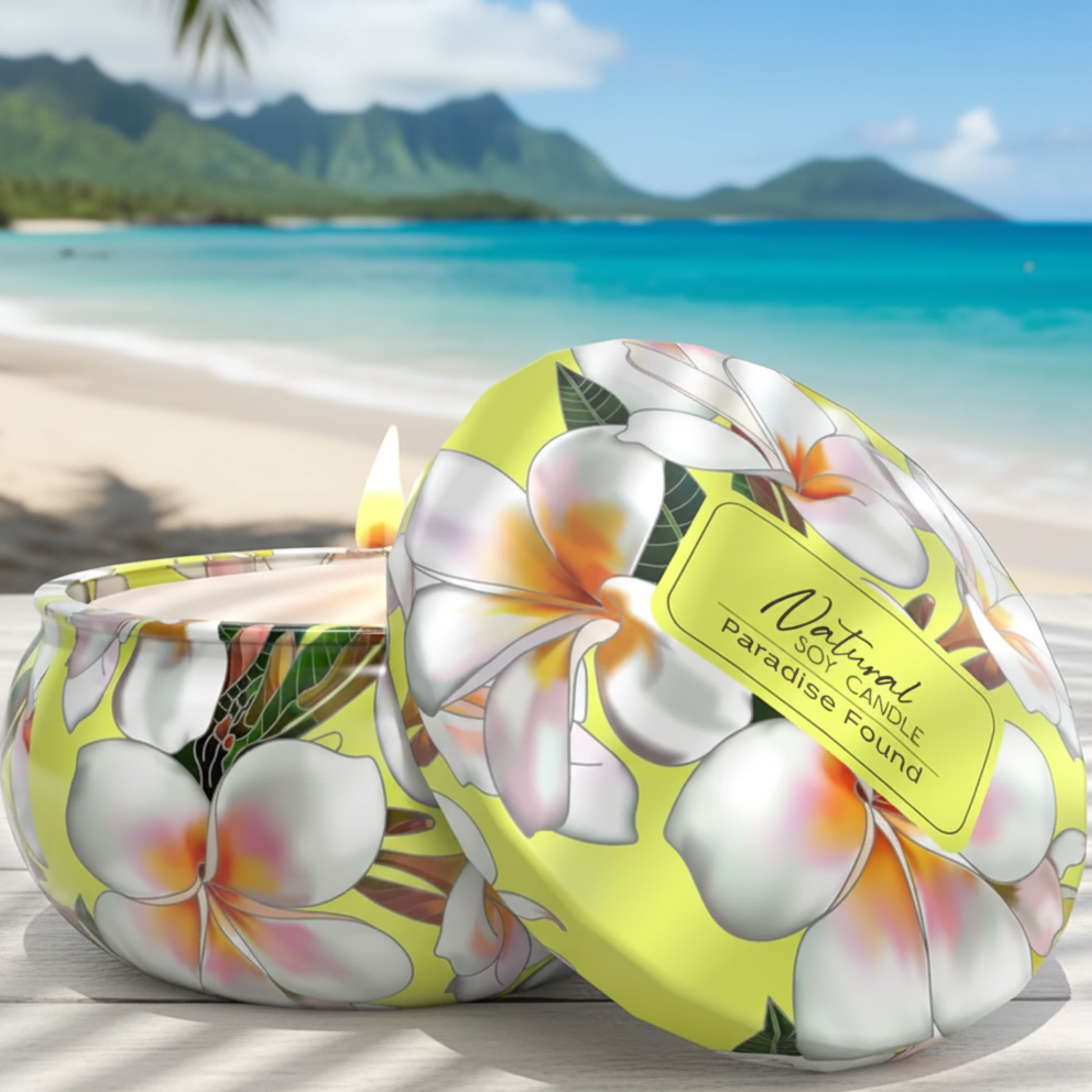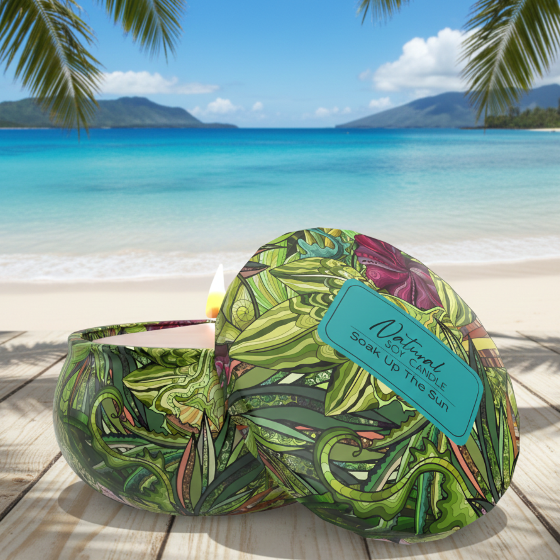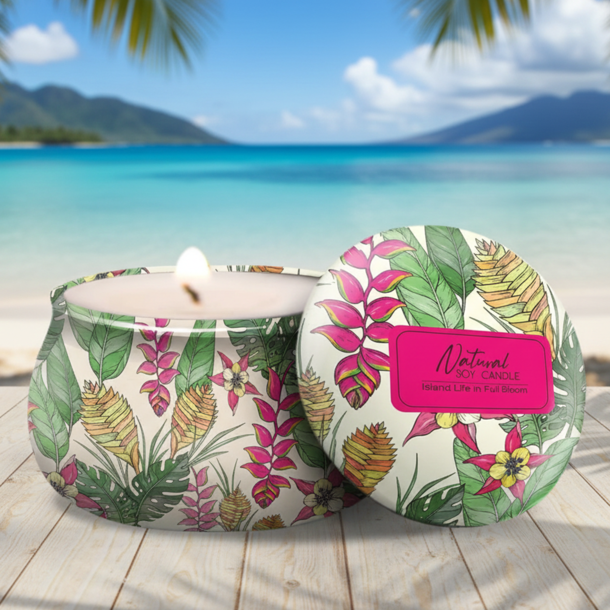 Natural soy and inland flavors blended wax with a crackling cherrywood wick. This candle is highly fragrant with the smell of juicy, ripe fruits. Burn time is 45+ hours and the one of a kind tropical tin will make a wonderful addition to any decor or great as a gift. From Hilo Hawaii!