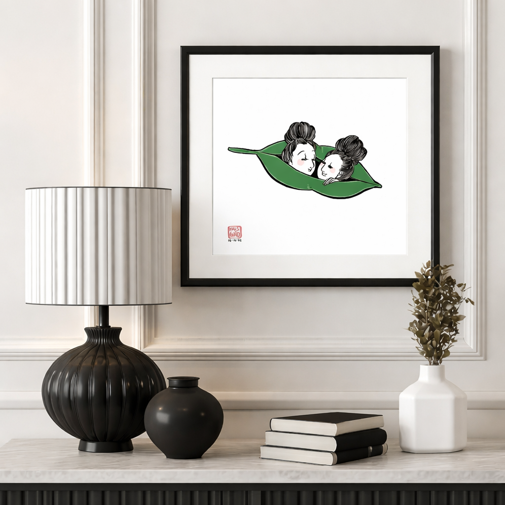 “EDAMAME” was inspired by the artist wondering, “If you’re an edamame, what if you don’t like your roommate in your pod??” Here, it looks like she’s found her best friend in the pod!