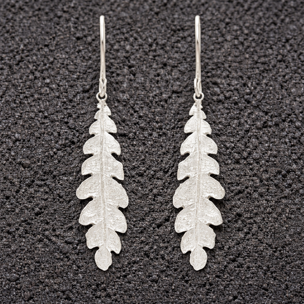 Cast from real ferns found along the Hawaiian forest floor, the Forest Fern Earrings feature a lifelike texture and unique organic style. Vertically fastened and accented with your choice of 18K gold vermeil or recycled sterling silver, the tiny fern's iconic silhouette sways with graceful movement and immediately elevates a casual look.