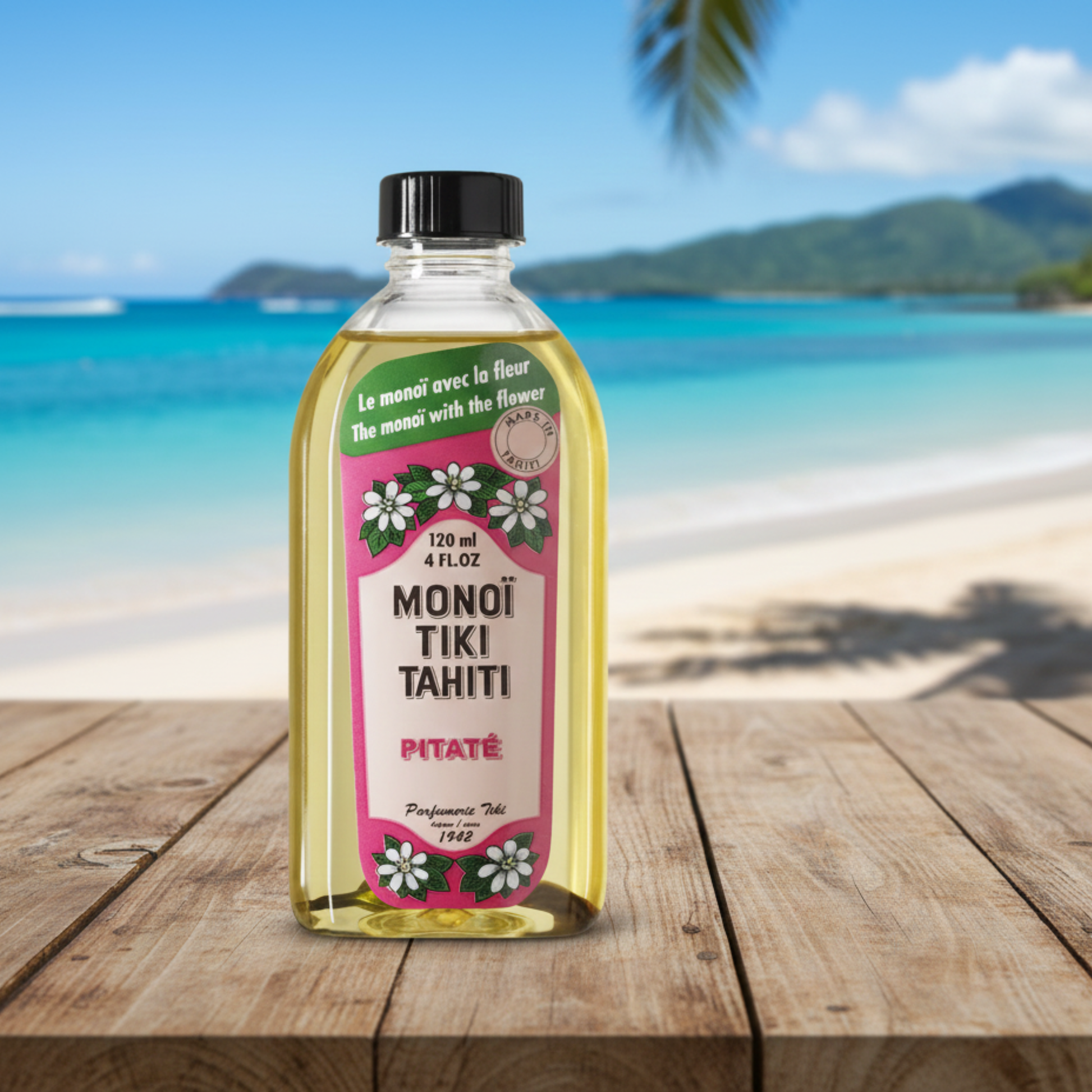As a distinctive feature, Monoi Tiki Tahiti includes a dried Tiare or Tahitian Gardenia flower in every bottle to signify its authenticity.